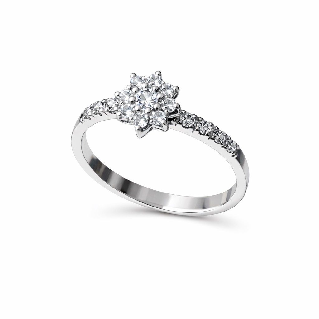 Este anillo cintillo está elaborado en oro blanco de 2,9 gr y presenta un refinado diseño en roseta. Está compuesto por 16 diamantes de corte brillante de 0,02 quilates cada uno, acompañados por una pieza central de 0,05 quilates con un peso total de 0,37 quilates. Su diseño equilibrado realza el brillo de las piedras y aporta una presencia sofisticada, ideal para quienes buscan una joya fina, elegante y de excelente terminación.