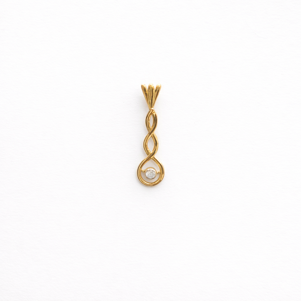Colgante con diseño elaborado en oro amarillo, con un peso de 2 gramos e incorporando un circón central. Presenta líneas definidas y estructura estilizada, que aportan ligereza y buena presencia visual. Su terminación pulida realza la piedra y el trabajo del metal, ofreciendo una joya cuidada y equilibrada para uso diario.