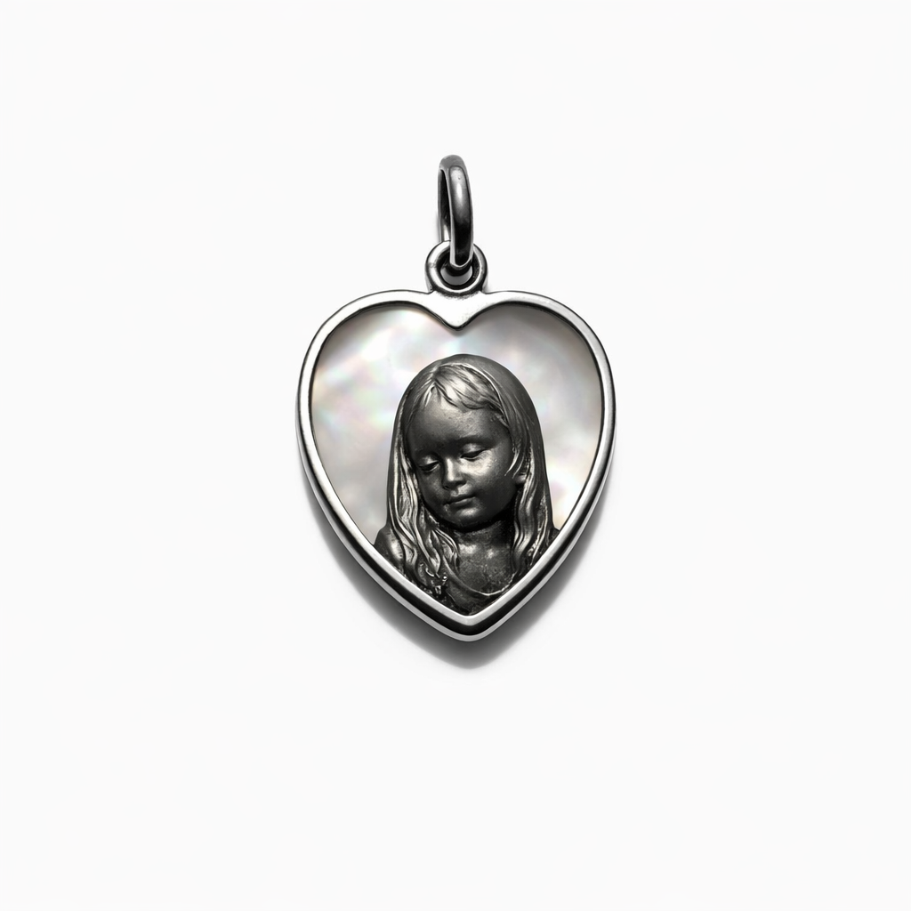 Medalla de la Niña en plata con fondo de nácar.