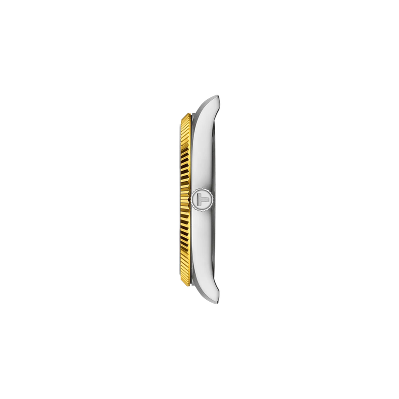 El Tissot Ballade Quartz – Ref. T156.410.22.031.00 es una expresión de elegancia refinada y precisión suiza. Su esfera plateada, sobria y luminosa, se combina armónicamente con un brazalete bicolor en acero inoxidable y tono dorado, logrando un equilibrio perfecto entre distinción clásica y modernidad.