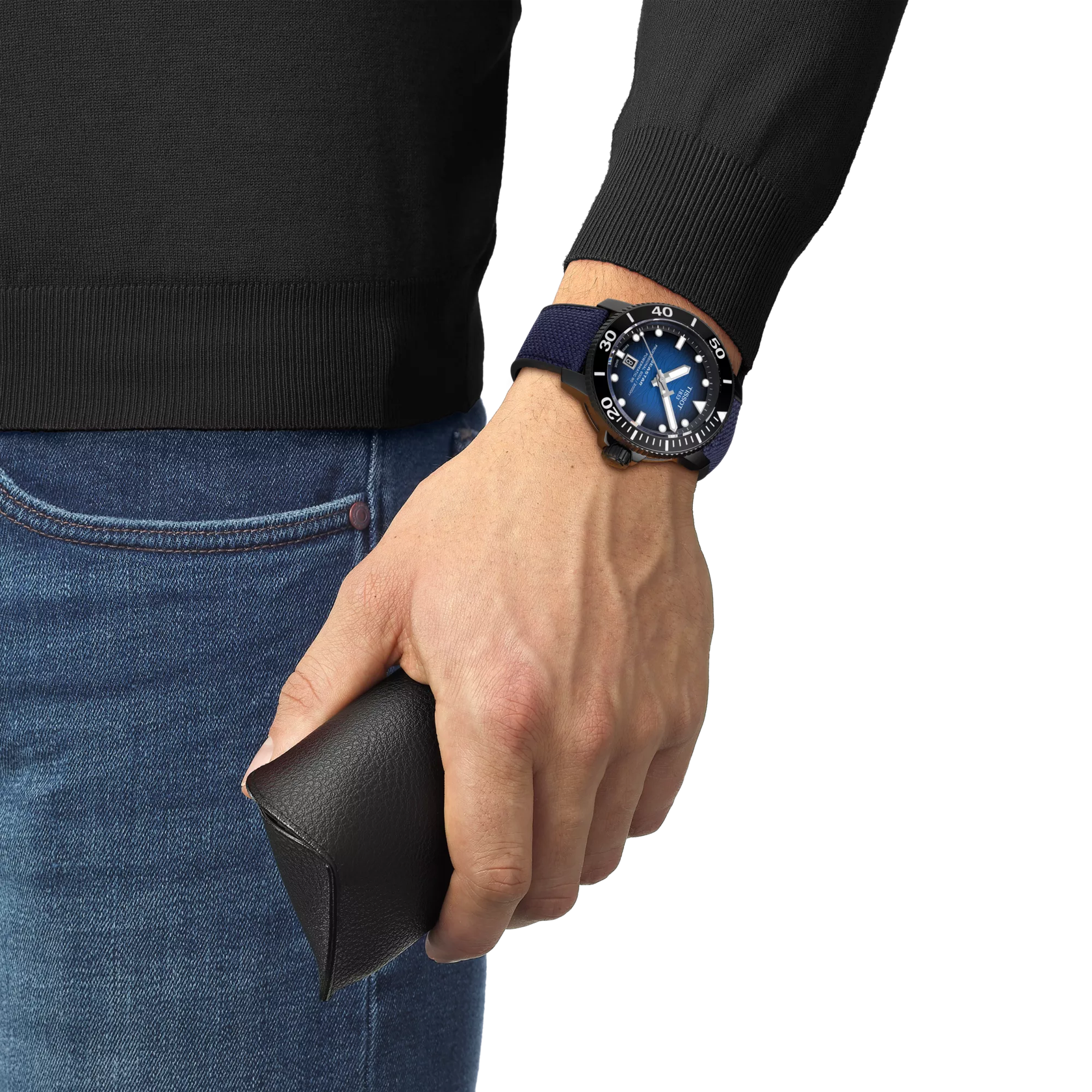 • Correa/Brazalete: con revestimiento PVD azul y negro